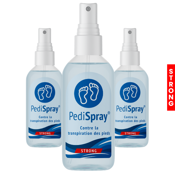 - PediSpray® Strong : Contient 20 % de chlorure d’aluminium et est destiné aux personnes souffrant de transpiration sévère ou persistante, comme la transpiration excessive des pieds. Il offre une protection plus puissante et plus durable contre la transpiration excessive.